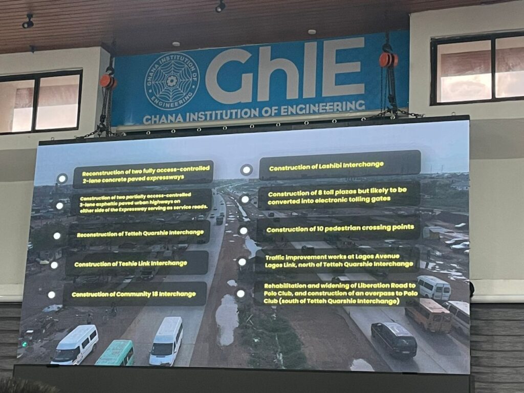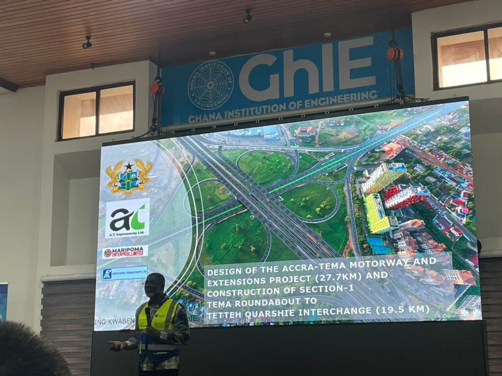 At a recent stakeholder meeting at the Engineering Centre, Roman Ridge, Ing kwabena Bempong (Immediate Past President or GhIE) and the project team leading the Accra–Tema Motorway reconstruction project provided an in-depth update on the ongoing works, highlighting progress, challenges, and next steps.